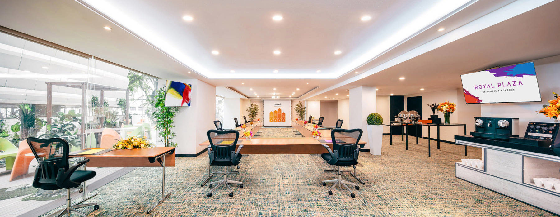 ロイヤルプラザ オン スコッツでホストするイベントはいつも華やかで楽しいひと時が盛りだくさん。ご要望に応じてカスタマイズ可能な広々と柱が無く天井までのゴージャスな窓のボールルームはオーチャードロード・エリアでもミーティング、イベントなどに人気の会場、美味なカロ―セルからのケータリングと合わせてご利用いただけます。