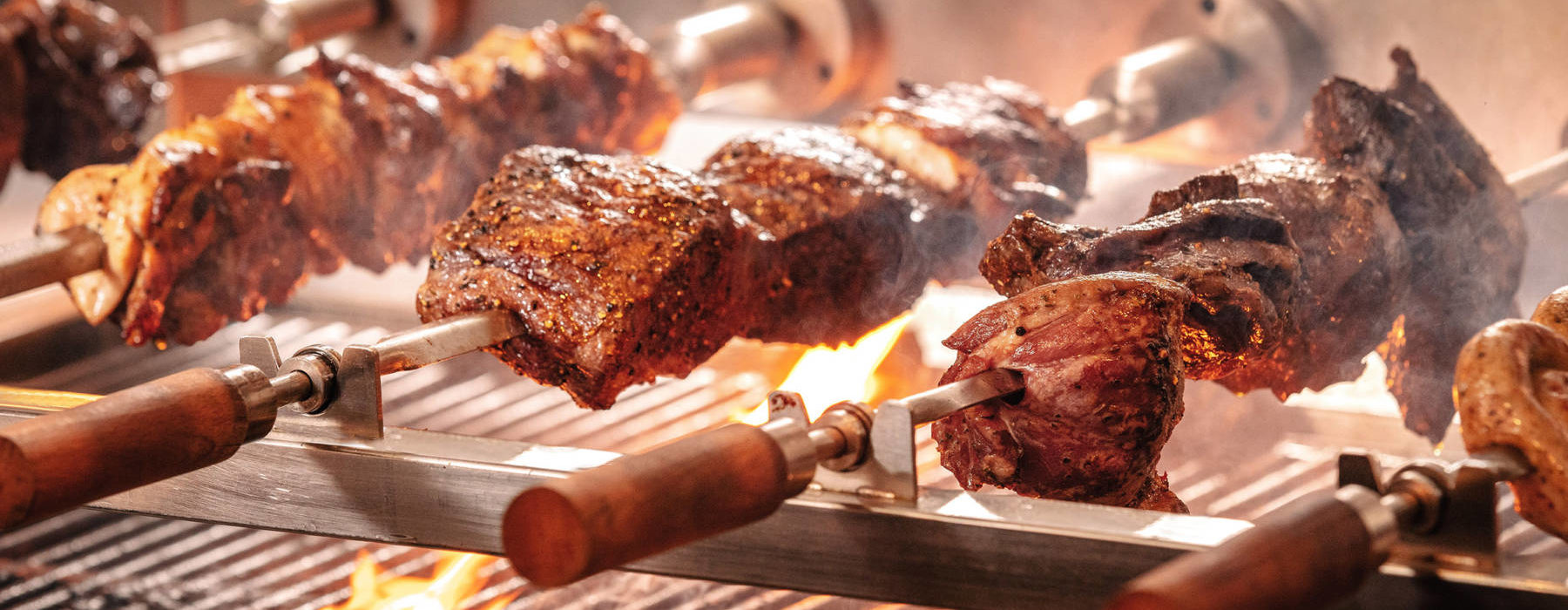 Just watching the delicious flames lick the meats, and the dripping juices of the roast make our mouths water.
